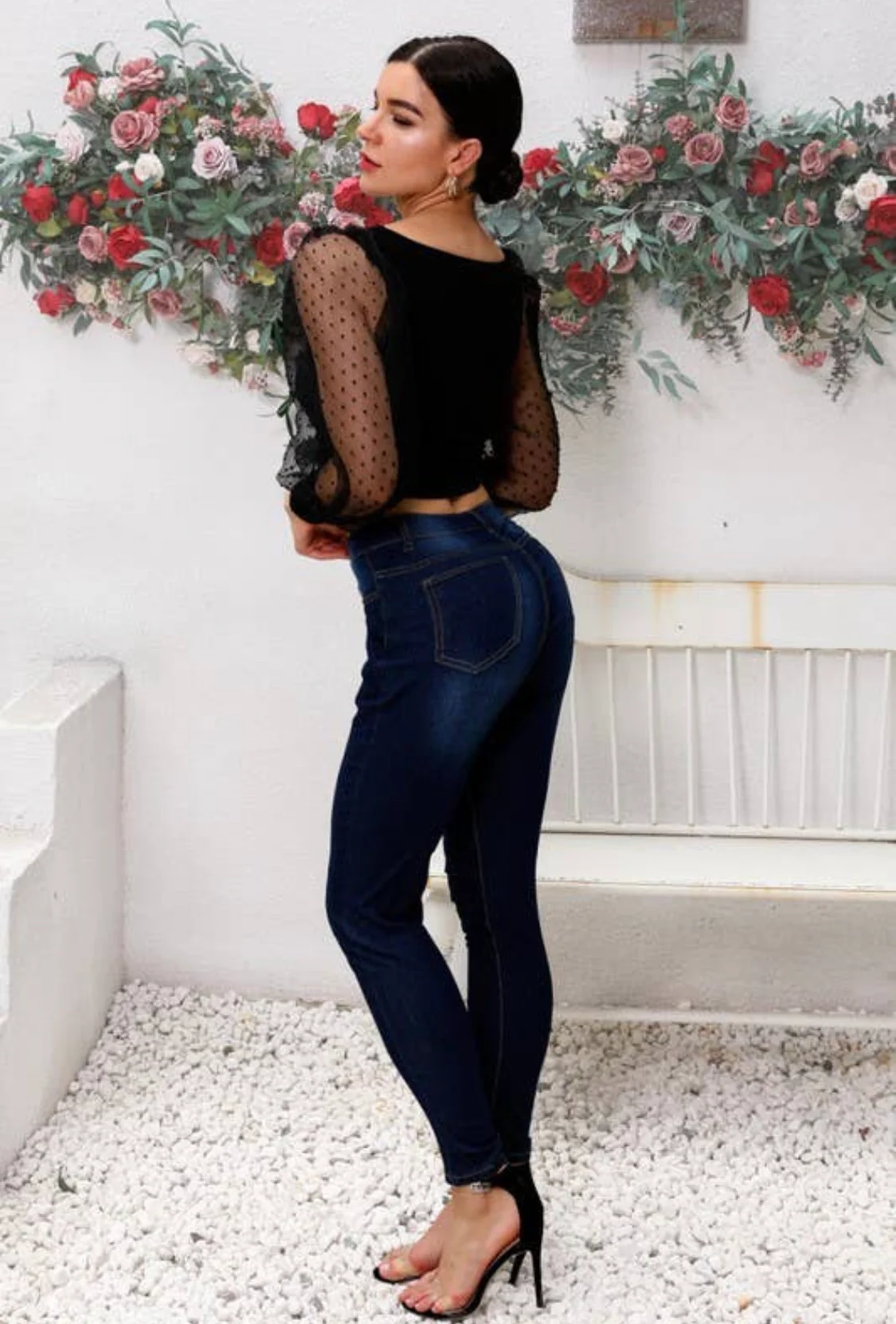 This adorable puff sleeve top comes in off white & black. featuring swiss dot details, side zipper, & cropped fit.